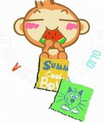 这张插图里的猴子,简直就是一个活宝。它坐在一片绿油油的草地上,手里捧着一个大西瓜,嘴巴张得大大的,仿佛在享受着夏日的清凉。猴子的表情超级可爱,眼睛弯成一条线,嘴角上扬,好像在说:“这瓜真甜啊!”